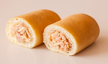 Pãozinho artesanal recheado com filé de peito de frango desfiado e temperado.
